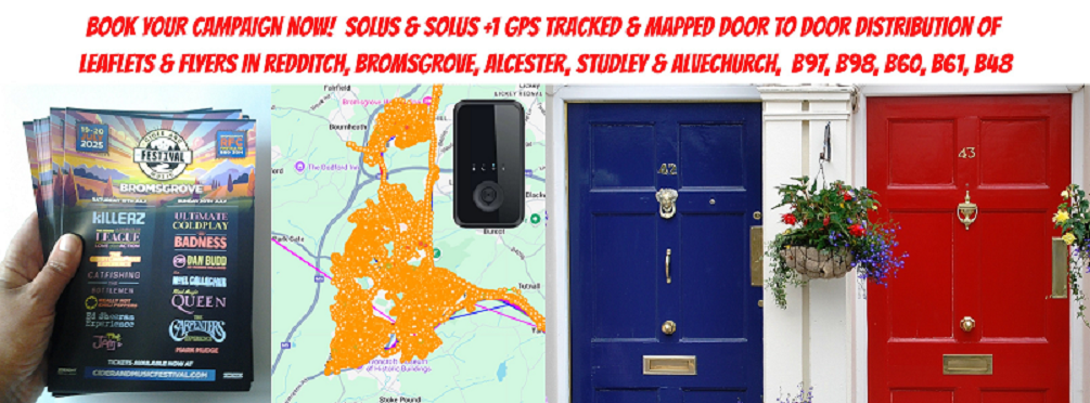 Solus - Redditch, Studley - Price is £160 per 1,000 delivered. Your leaflet / flyer will be delivered entirely independently for the maximum possible visibility and response rate.
